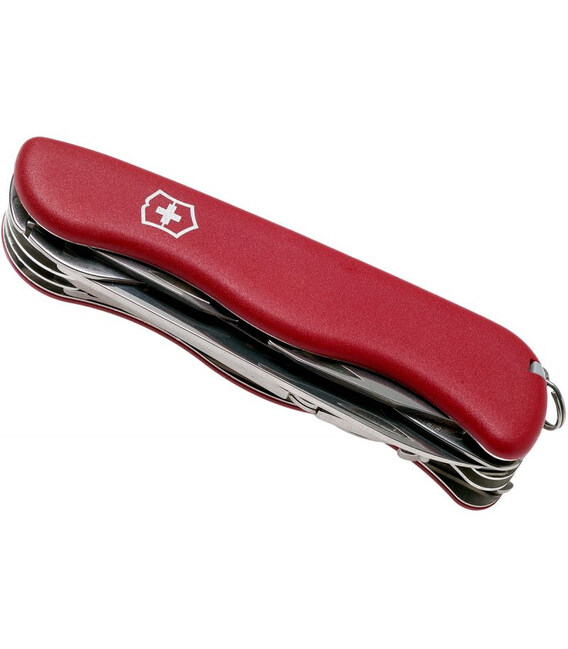 HERCULES от Victorinox - большой карманный нож 111 мм с 18 функциями, включающими плоскогубцы и ножницы. Сверхпрочный дизайн с прирожденной многозадачностью.Идеальный портативный мультиинструмент для работы с болтами и гайками, кабелями. Клинок и большая открывалка снабжены функцией блокировки типа Liner-lock (продольная стальная пластина). Полезный набор плоских и крестовых отверток и открывалок.1. большой клинок с блокировкой Liner-lock2. пила по дереву3. открывалка с4. – отвертка 5 мм с блокировкой5. – паз для устранения изоляции6. консервный нож с7. – отвертка 3 мм8. крестовая отвертка 1/29. крестовая отвертка 0/1, длинная10. дырокол11. ножницы12. штопор13. плоскогубцы с 14. – кусачки15. – инструмент для обжима проводов16. пинцет17. пластиковая зубочистка18. кольцо для подвешивания Использование высококачественной нержавеющей стали и полиамида позволило создать мощный и производительный складной нож, для которого нет непреодолимых трудностей. Режущие кромки на протяжении долгого периода сохраняют идеальную заводскую заточку для предельно легкой и точной работы.Каталожный номер: 0. 8543 Бренд-производитель: Victorinox AG, Швейцария Большой размер (длина х толщина): 111 х 27 мм18 функций Высококлассная нержавеющая сталь Красные матовые накладки из полиамида Официальная гарантия на качество материалов и сборку Упаковка: серебристая картонная коробочка Купить складной нож Victorinox (Викторинокс) Hercules 0.8543 на сайте chemodanoff.com.ua – 100% оригинал, сертифицированный гарантийный сервис, выгодная цена и быстрая доставка по Украине. Интернет-магазин оригинальной брендовой продукции для себя и на подарок.