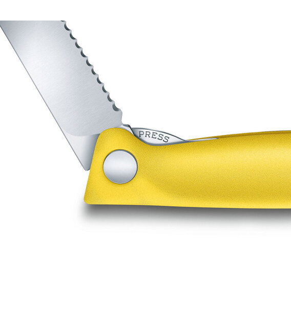 Складной кухонный нож SwissClassic Foldable Paring с лезвием 11 см (серрейтор) с желтой ручкой (упаковка: блистер) Victorinox 6.7836.F8B Швейцария