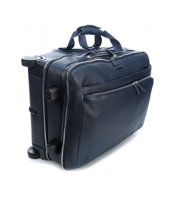 Чемодан на 2 колесах Piquadro Modus (MO) BV2960MO_BLU. Стильное решение для Ваших путешествий. Данная модель демонстрирует презентабельный формат для деловых людей. Окрас в темный цвет синего. Кожа отборного сорта, натуральная и обработанная тщательно и с пропиткой без вредных химических веществ. Она устойчива от изнашивания. Не деформируется, что говорит о сохранности формы. Металлическая фурнитура. Множество карманов и отделений для вещей, устройств. Средний размер: 39х53х24 см., объем – 43 л. – M, оптимально подходящий для самых разноплановых перелетов и поездок. Двойная система объемных колес. Передние ножки для устойчивости. Телескопическая ручка и две ручки для переноса с фиксатором. Двухколесный чемодан Пиквадро (Piquadro), коллекция Modus (MO) составит долгие годы уверенной и надежной службы.