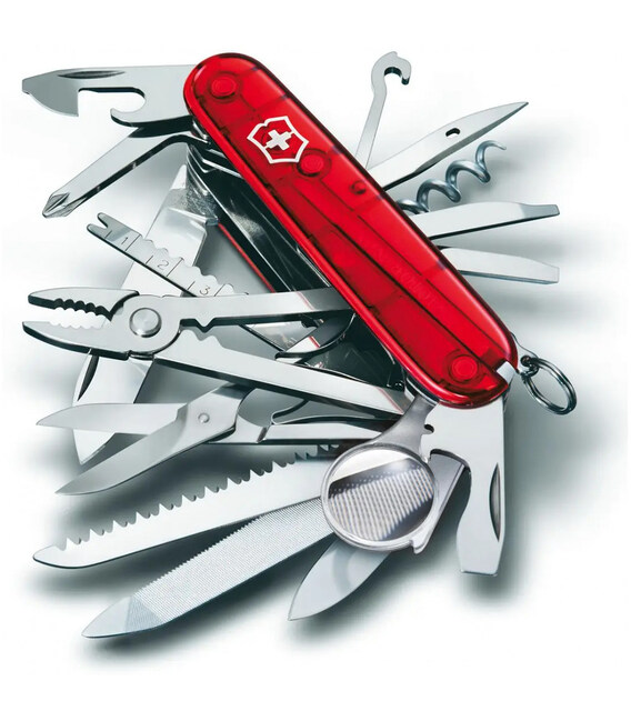 Швейцарский армейский нож SWISS CHAMP 91мм / 8 слоев / 33 функции / красные полупрозрачные накладки / крестовая отвертка / пила по дереву и металлу / плоскогубцы / рыбочистка Victorinox 1.6795.T Швейцария