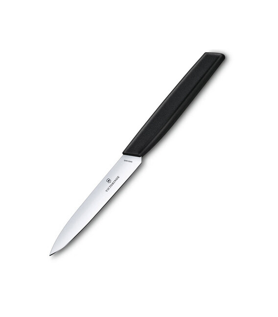Кухонный нож для очистки Swiss Modern Paring с лезвием 10 см (гладкое) и черной ручкой Victorinox 6.9003.10 Швейцария