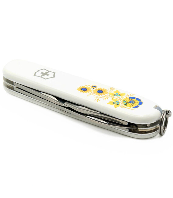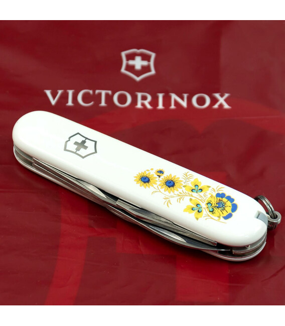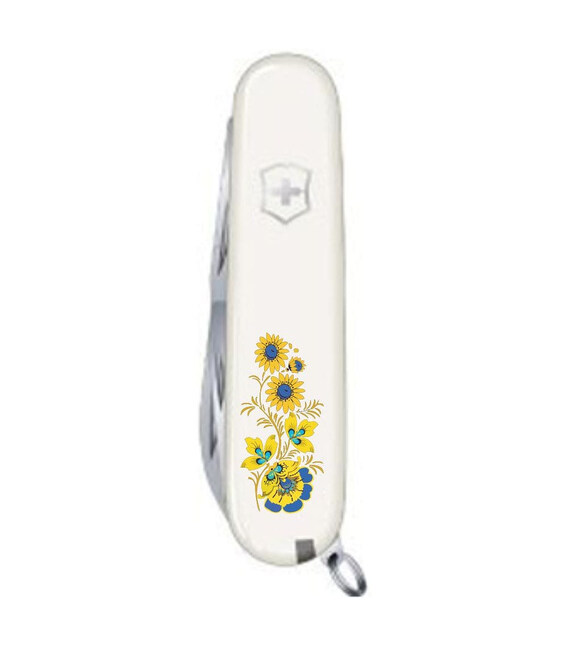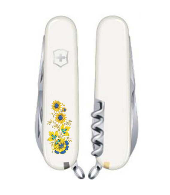 Средний карманный нож Victorinox SPARTAN UKRAINE 91мм / 12 функций / белые накладки / штопор / Цветы