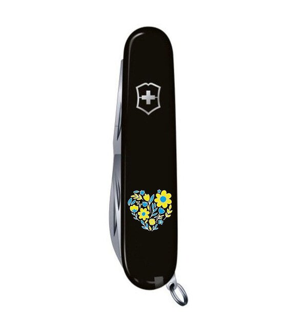 Средний швейцарский карманный нож Victorinox SPARTAN UKRAINE 91мм / 2 слоя / 12 функций / черные накладки / штопор / Цветочное сердце