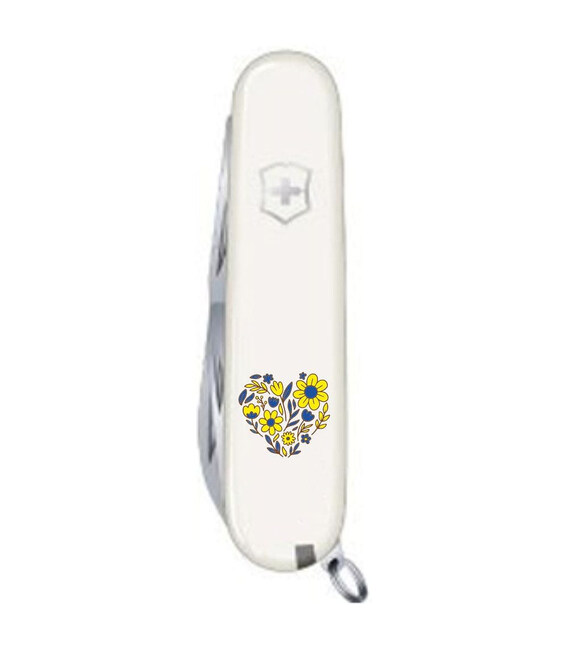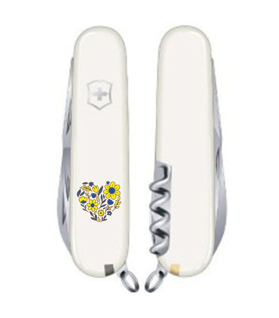 Средний швейцарский карманный нож Victorinox SPARTAN UKRAINE 91мм / 2 слоя / 12 функций / белые накладки / штопор / Цветочное сердце