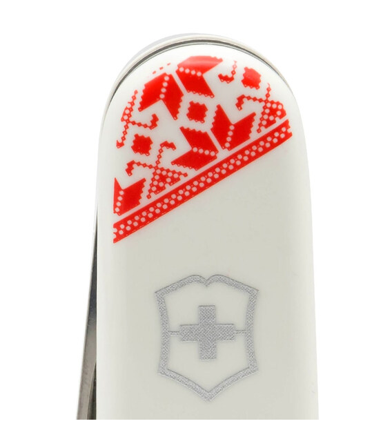 Средний карманный нож Victorinox CLIMBER UKRAINE 91мм / 14 функций / белые накладки с красным орнаментом / штопор / ножницы / крюк / Вышиванка Швейцария
