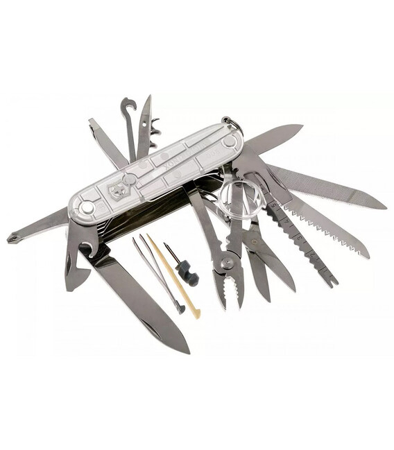 Victorinox SWISSCHAMP 91мм / 31 функция / серебистые полупрозрачные накладки / штопор / ножницы / плоскогубцы / пила / напильник / лупа / стамеска / рыбочистка Швейцария 1.6794.T7