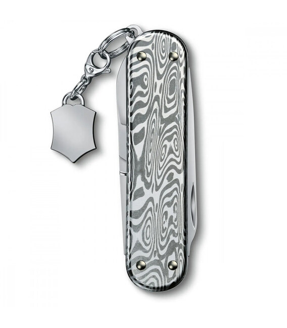 Швейцарский карманный нож Victorinox CLASSIC SD Brilliant Damast 58мм / 2 слоя / 5 функций / накладки из дамасской стали / ножницы + брелок-лого 0.6221.34 (Швейцария) Гарантия: пожизненная