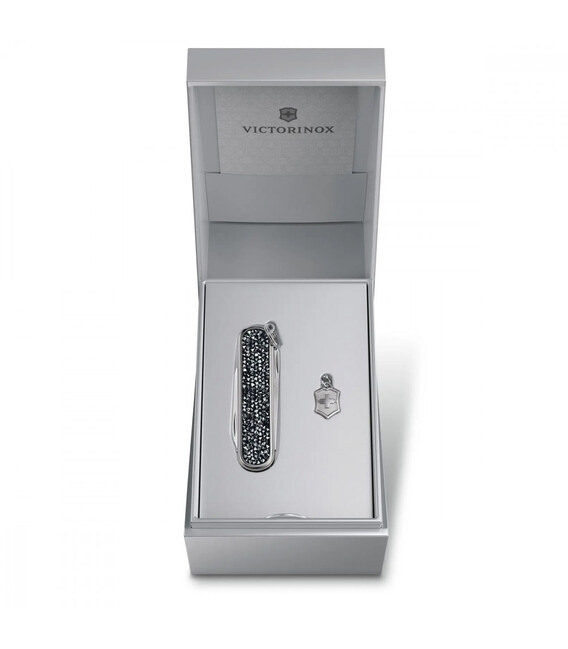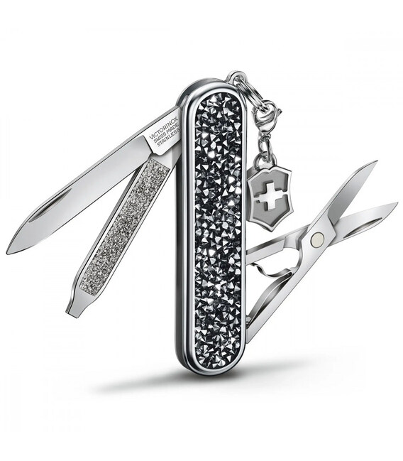 Victorinox CLASSIC SD Brilliant Crystal – складной нож-брелок длиной 58 мм на 5 функций. Истинное произведение искусства со сверкающими кристальными накладками.Роскошный вид и безупречная функциональность. Этот нож станет настоящим бриллиантом в вашей коллекции швейцарских складных ножей. Маленький и мультизадачный, он прекрасное дополнение к вашему ежедневному арсеналу полезных вещей. А совершенный дизайн и шарм делают этот инструмент непревзойденным по элегантности. Это блестящее переосмысление легенды.Информация о ноже CLASSIC SD Brilliant Crystal:✔ Эксклюзивные черные накладки из черных кристаллов высочайшего качества.✔ Нож швейцарского производства из первоклассной нержавеющей стали.✔ 5 функций.✔ Размер ножа по рукояти (длина х ширина х толщина), мм: 58 х 18 х 7✔ Вес: 24 г✔ Серийный номер модели: 0.6221.35✔ Специальная подарочная коробка с сертификатом качества.✔ Официальная пожизненная гарантия.Функции:1. небольшой нож 40 мм2. ножницы с пружинным механизмом3. пилочка для ногтей4. – маленькая плоская отвертка 2.5 мм5. стальное кольцо со съемным брелоком-логотипом Сделано в Швейцарии. Подлинная продукция, профессиональный гарантийный сервис и быстрая доставка.