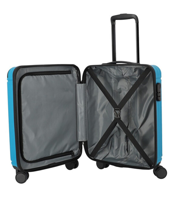Travelite CRUISE [Turquoise] на 37 литров – маленький голубой чемодан для ручной клади. Просторный пластиковый дизайн с классической организацией упаковочного места и встроенным кодовым замком. Размер рассчитан для непродолжительных поездок на выходные или краткосрочных командировок.Легкий и ударопрочный пластиковый багаж с рифленой поверхностью, которая отвечает как за дополнительную защиту от повреждений, так и за визуальную привлекательность. Стильно выглядят и защищают от ударов черные накладки на углы. Маневренный чемодан на 4 устойчивых колесах, с которым поездки становятся комфортными.Информация о чемодане CRUISE Turquoise (072647-23)✔ Дизайн: Turquoise (голубой).✔ Твердый водонепроницаемый корпус: ABS-пластик.✔ Маленький размер (ручная кладь) 55 х 39 x 20 см✔ Легкий вес: 2,7 кг✔ Встроенный в корпус кодовый замок.✔ 4 двойных колеса с гладким тихим протектором.✔ Качественная водонепроницаемая молния.✔ Телескопическая ручка с несколькими точками фиксации на разной высоте.✔ Маленькая верхняя ручка для поднятия и переноски в руках.• Стандартные 2 секции для вещей.• В первой секции - перегородка на молнии.• Во второй – компрессионные х-образные резинки.Немецкие чемоданы TRAVELITE/Тревелайт (Оригинал, Германия) с официальной гарантией качества в магазине Chemodanoff.