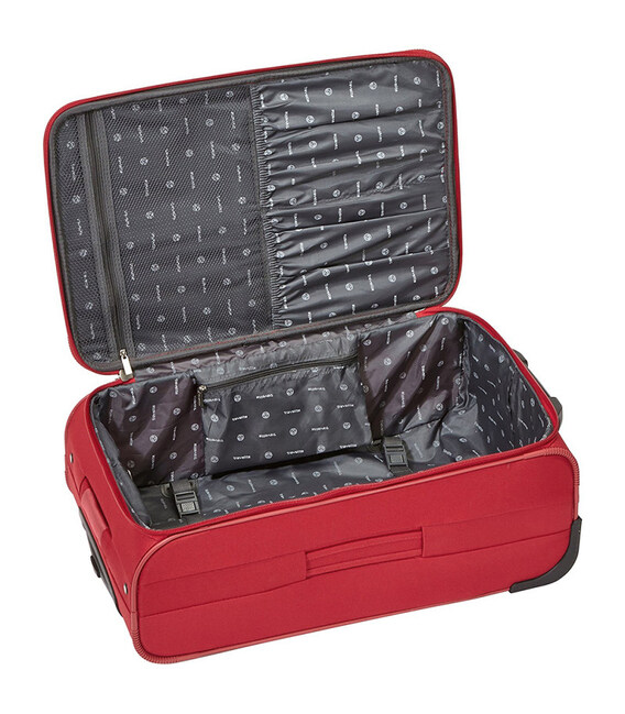 ORLANDO/Red Чемодан на 2 колесах M (58л,3,6кг) (41x63x25см)Чемодан на 2 колесах Travelite Orlando M TL098488-10 – лучший багажный атрибут для влюбленного в странствия путешественника или делового человека, который по долгу службы часто бывает в командировках. Легкий вес изделия – всего 3,8 кг, не обременяет владельца чемодана в пути, а достаточная вместительность – 58 л, позволяет аккуратно разместить все вещи, которые понадобятся в поездке. Внутри Трэвелайт Орландо оснащен большим сетчатым и маленьким текстильным карманами на замках. Чтобы упакованные в чемодан вещи не сминались во время поездки, внутри предусмотрены прочные фиксирующие ремни. Дополнительное место для хранения личных вещей, предметов первой необходимости и т.д., предоставляют наружные карманы, оснащенные замками-молниями. Ручная переноска чемодана в горизонтальном или вертикальном положении происходит с помощью прочных текстильных петель, расположенных в боковой и верхней частях корпуса. Максимально комфортная эксплуатация Трэвелайт Орландо происходит с помощью выдвижной ручки. Специальная кнопка позволяет быстро отрегулировать необходимую высоту этого функционального элемента. Передвижение представленного дорожного аксессуара происходит с помощью двухколесной системы, обеспечивающей быстрое, плавное, бесшумное, а также маневренное перемещение чемодана по территориям с поверхностью любого типа. Корпус Трэвелайт Орландо выполнен из прочного полиэфира, устойчивого к проникновению влаги, активному УФ-излучению, разрывам и механическим деформациям. Чтобы максимально быстро и выгодно купить Travelite Orlando M TL098488-10, спешите оформить заказ онлайн через электронную корзину нашего сайта.