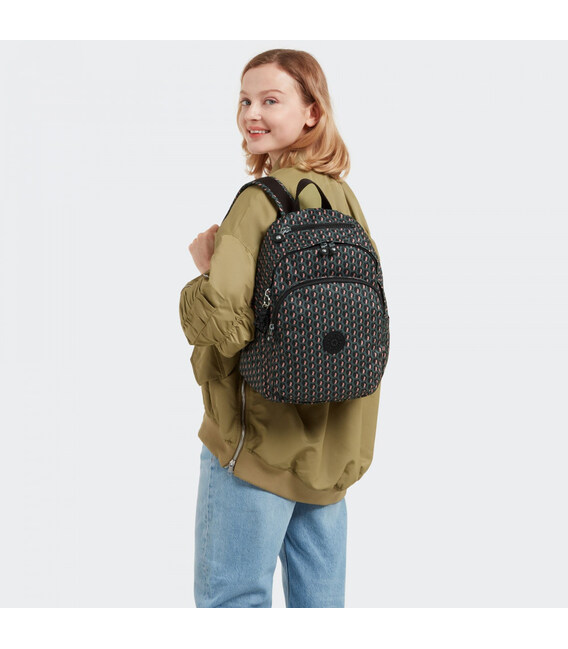 Средний женский рюкзак DELIA с современным графичным принтом (коллекция Basic Print). Аккуратный внешний вид Delia идеально подходит для городской жизни. Легкий текстильный рюкзак с отличной вместительностью и множеством полезных карманов. Храните свои вещи организовано, имея при этом удобный доступ к мелким предметам. Это идеальный компаньон для активного, но элегантного образа жизни.Информация о рюкзаке Delia - KI4528 (E1A):✔ Цвет и название дизайна: 3D K Pink (черно-розовая 3D графика на сером фоне).✔ Внешний материал: 100% переработанный полиэстер (легкий, прочный и водоотталкивающий текстиль).✔ Подкладка: 100% переработанный полиэстер.✔ Застежки: молнии с лого Kipling.✔ Комфортные плечевые ремни (длина регулируется).✔ Верхняя ручка-петелька для подвешивания или переноски в руках.✔ Брелок-талисман – обезьянка в виде робота.✔ Фирменный круглый логотип на переднем кармане.✔ Средний размер: 37 х 33 х 22 см / 16 л.• 1 отделение с внутренним карманом на молнии.• 1 большой лицевой карман на молнии (внутри – 1 открытый карман и петли для ручек).• 1 маленький верхний карман на молнии для наушников или солнцезащитных очков.• 2 боковых кармана на резинке.Модные рюкзаки Kipling на сайте chemodanoff.com.ua - 100% Оригинал (Бельгия).Быстрая доставка по Киеву и всей Украине.