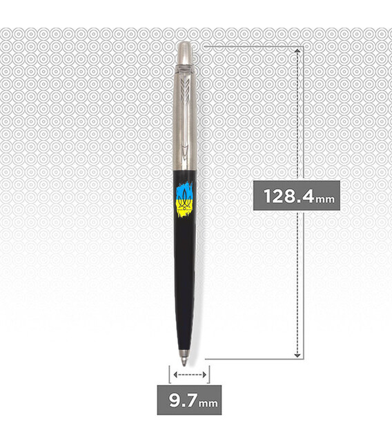 Черная шариковая ручка Parker JOTTER UKRAINE Originals Black CT с фигурным Трезубцем на фоне сине-желтого Флага. Благодаря персонализированному дизайну с украинской символикой продемонстрирует вашу гордость быть украинцем и станет нетривиальным подарком. Jotter с 1954 года остается лучшей ручкой для тех, кому нужна простая и функциональная ручка для работы, учебы.Корпус изготовлен в сочетании прочного пластика и металлического колпачка из стали. Качественно выполненная печать на корпусе устойчива к истиранию и будет радовать насыщенностью цвета многие годы. Блеска и динамичности придают также фирменные хромированные детали: зажим-стрела Parker и стальной наконечник. Последний придает дополнительной долговечности конструкции и эстетичной привлекательности. Шариковые ручки Parker используют стержни QuinkFlow, также совместимы с гелевыми стержнями Parker GEL.✔ Эксклюзивный выпуск Jotter Ukraine.✔ Цветная цифровая УФ-печать с покрытием глянцевым лаком - Трезубец фигурный на фоне Флага.✔ Черный пластиковый корпус со стальным полированным колпачком.✔ Блестящий зажим-стрела с хромированием.✔ Длина ручки: 128 мм.✔ Классический механизм с мягким нажатием кнопки.✔ В ручке стержень QuinkFlow: синие чернила, средняя толщина письма (диаметр шарика=1 мм).✔ Оригинальная подарочная коробка Parker.✔ Сделано во Франции (название страны выгравировано на колпачке).