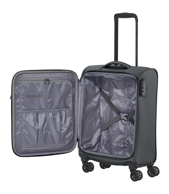 Travelite CROATIA [темно-зеленый] на 35 литров – маленький текстильный чемодан с большим передним карманом и встроенным кодовым замком. Размер S и мягкий тип корпуса делает чемодан комфортным вариантом для краткосрочных поездок. А наличие багажной манжеты на спинке станет прекрасным дополнением, если вы решите отправиться в поездку больше, чем с одним чемоданом.Коллекция Croatia от немецкого бренда Travelite – это линейка текстильных чемоданов в практичном мягком корпусе, который позволяет упаковать еще парочку-вторую вещей, когда твердый багаж уже трещал бы по швам. Внешний карман является еще одним преимуществом мягкого багажа. Он незаменим для размещения вещей первой необходимости: от билетов, документов или салфеток до книги или легкой куртки.Информация о чемодане Travelite CROATIA Forest Green [080347 82]✔ Водонепроницаемый текстильный корпус: полиэстер 600D.✔ Маленький размер: высота 55 – ширина 39 – толщина 20 см (подходит для ручной клади).✔ Легкий вес: 2,4 кг.✔ Выносливая багажная молния с двумя бегунками.✔ Встроенный в корпус кодовый замок.✔ 4 колеса с двойными роликами – устойчивость и легкое разворачивание чемодана на одном месте.✔ Регулируемая по высоте телескопическая ручка.✔ Верхняя усиленная ручка для переноски.✔ Нижняя ручка для удобного укладывания чемодана в багажный отсек.✔ Широкая багажная манжета на спинке для фиксации на большем чемодане (в размере S).• Глубокая камера с фиксирующими ремнями.• Отделение на молнии под крышкой чемодана.• Дополнительные карманы на перегородке.• Большой передний карман на молнии.Оригинальные немецкие чемоданы TRAVELITE/Тревелайт - официальная гарантия качества и быстрая доставка от А ttribute.ua.