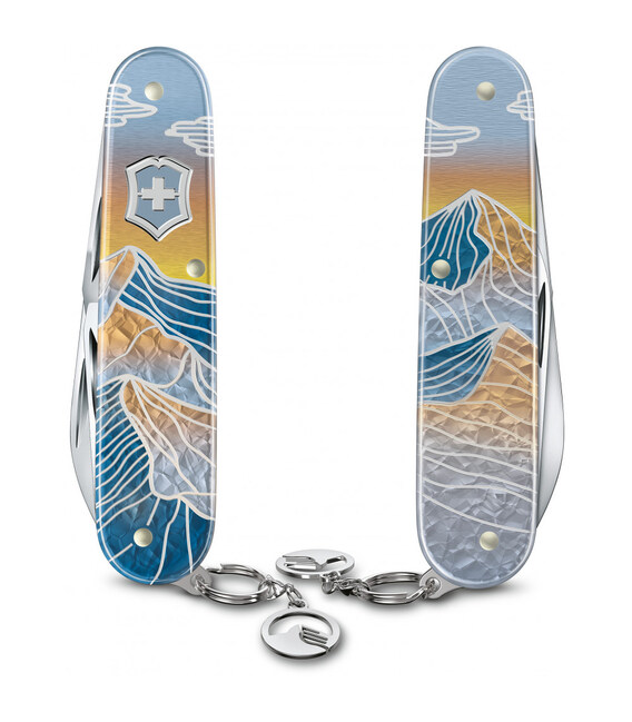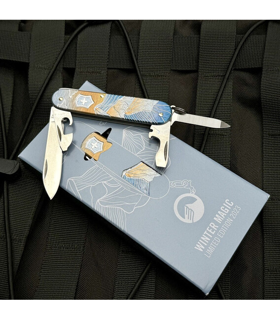 Коллекционный швейцарский нож Winter Magic Limited Edition 2023. Уже пятое переосмысление Winter Magic. Коллекция 2023 года воспевает красоту зимних швейцарских гор в трехмерной красе. Это уникальное изделие, отличающееся выдающимся дизайном на накладках Alox в комплектации ножа Cadet. А съемное украшение-подвеска придает дополнительный шарм. Почувствуйте зимнее волшебство гор. Это идеальный рождественский подарок для любителей зимы, а также для всех, кто ценит детали.Информация о складном ноже CADET Alox Winter Magic Limited Edition 2023✔ Коллекционный дизайн с ограниченным тиражом – 10 000 экземпляров.✔ Специальные алюминиевые накладки с трехмерным дизайном зимних гор.✔ 9 функций.✔ Размер в сложенном виде: длина 84 мм – ширина 23 мм – толщина 8 мм.✔ Инструменты: высококачественная нержавеющая сталь с гладкой полировкой.✔ Специальная подарочная коробка с сертификатом.1. большое лезвие с гладкой заточкой2. пилочка для ногтей3. - очиститель для ногтей4. консервный нож5.- маленькая плоская отвертка 3 мм6. открывалка для бутылок7. - большая плоская отвертка 6 мм8. - паз для зачистки проводов9. кольцо со съемной подвеской
