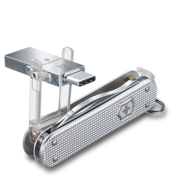 Victorinox JETSETTER@WORK ALOX (серебристый) – маленький складной брелок 58 мм на 6 функций, среди которых выделяется USB-флешка 3.0/3.1, обеспечивающая 32 ГБ памяти. Находитесь ли вы дома, в офисе или в дороге, этот карманный нож удовлетворит ваши потребности. Идеальный технический аксессуар для современного человека.Интерфейс: USB-накопитель 3.0 Type-A / 3.1 Type-C Скорость чтения: 90 МБ/с Скорость записи: 50 МБ/с Информация о складном ноже Jetsetter@work Alox [4.6261.26G32B1]✔ Изготовлен из высококлассной нержавеющей стали.✔ Серебристые накладки из рифленого анодированного алюминия с логотипом бренда.✔ 6 функций.✔ Вес: 28 г✔ Коллекция маленьких складных ножей Victorinox (длина х ширина х толщина), мм: 58 х 12 х 14✔ Сделано в Швейцарии.✔ Упакован в фирменный блистер.1. USB-флешка 32 ГБ2. отвертка крестовая 0/1, магнитная3. - открывалка4. - паз для зачистки проводов5. ножницы с пружинным механизмом6. кольцо для крепления VICTORINOX – стабильно высокое качество ножевой продукции с 1884 года.Подлинная продукция, профессиональный гарантийный сервис и быстрая доставка.