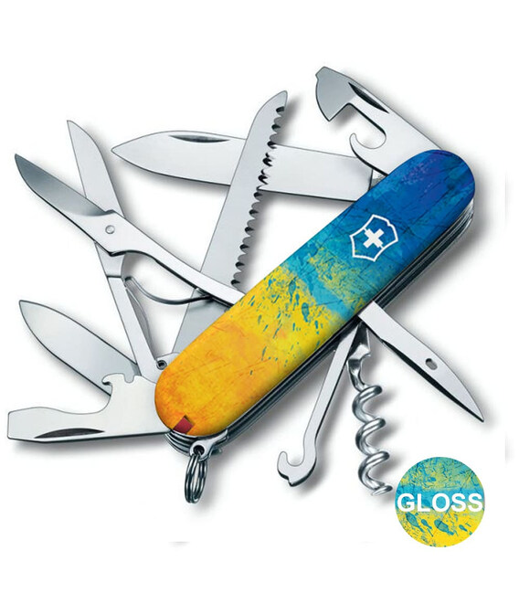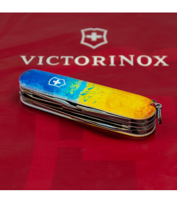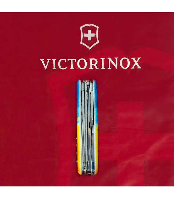 Описание Складной нож Victorinox HUNTSMAN UKRAINE Желто-синий рисунок 1.3713.7.T3100p