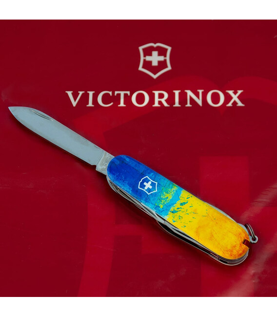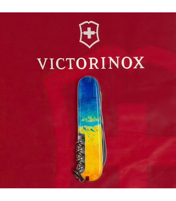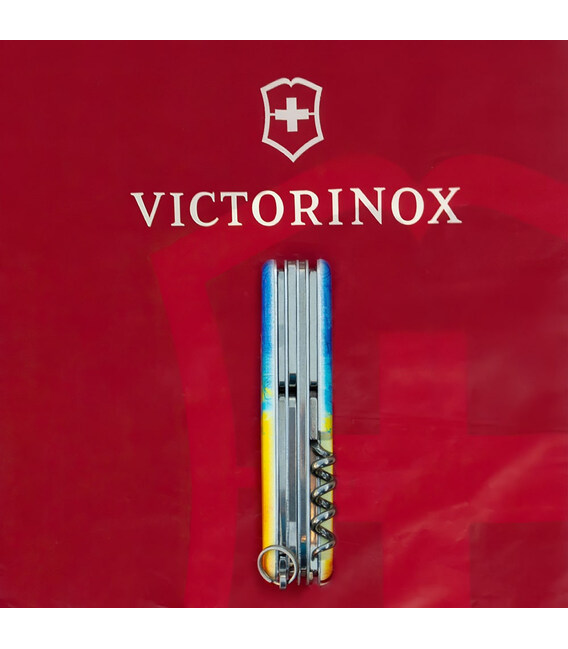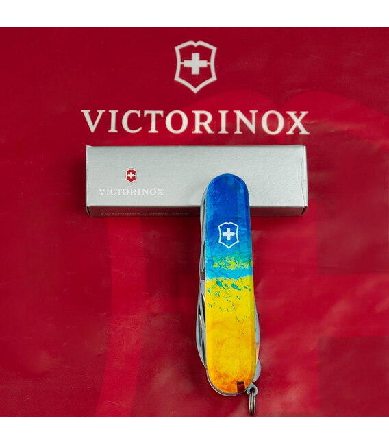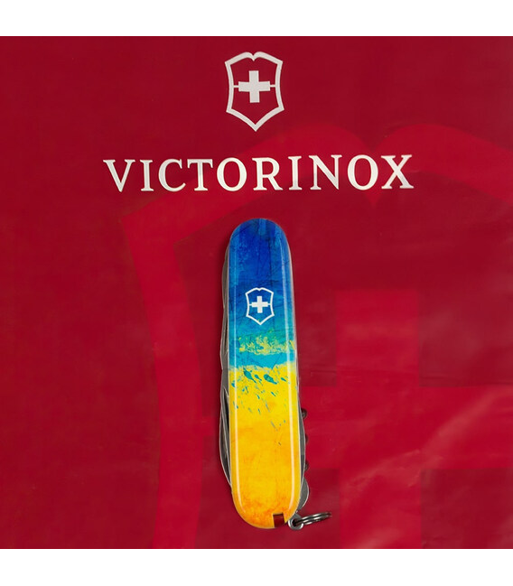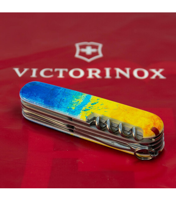 Швейцарский армейский нож HUNTSMAN 91 мм из эксклюзивной коллекции Victorinox UKRAINE. Дизайн с высококачественным полноцветным изображением с полной цифровой запечаткой накладок. Займет почетное место в вашей коллекции складных ножей Victorinox. Знаковый дизайн для себя и на подарок.Компактный формат карманного ножа с 15 функциями для частого использования. Отличная пила, способная распилить небольшое бревно. Ножницы и два очень острых лезвия длиной 3,5 и 6 см. Две открывалки (для консервов и бутылок) комбинированы с плоскими отвертками разного размера на конце. С другой стороны – штопор, крючок, а также дырокол-кернер с ушком для удобного использования в роли шила. Накладки содержат слоты с пинцетом и зубочисткой. Стальное кольцо, чтобы комфортно прикрепить нож к цепочке или темляку.Информация о складном ноже Victorinox HUNTSMAN UKRAINE [1.3713.7.T3100p]:✔ Патриотическая коллекция: HUNTSMAN UKRAINE.✔ Ударопрочные пластиковые накладки с печатью Желто-синий рисунок.✔ Тип нанесения: полноцветная цифровая печать.✔ Инструменты: высококачественная нержавеющая сталь.✔ Количество функций: 15.✔ Средний размер складного ножа: длина 91 мм – ширина 26 мм – толщина 21 мм✔ Вес ножа: 97 г✔ Сделано в Швейцарии.✔ Комплектация включает нож, оригинальный сертификат и картонную коробочку.✔ Victorinox AG гарантирует, что все ножи из первоклассной нержавеющей стали.✔ Пожизненная гарантия от любых дефектов материалов и производства.✔ 100% оригинал Victorinox/Викторинокс (Швейцария).
