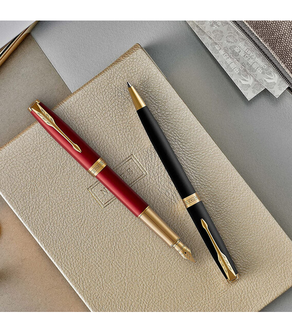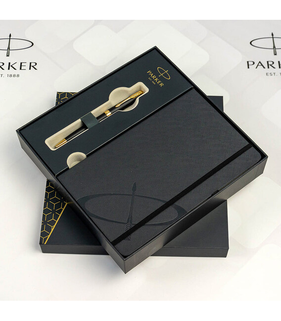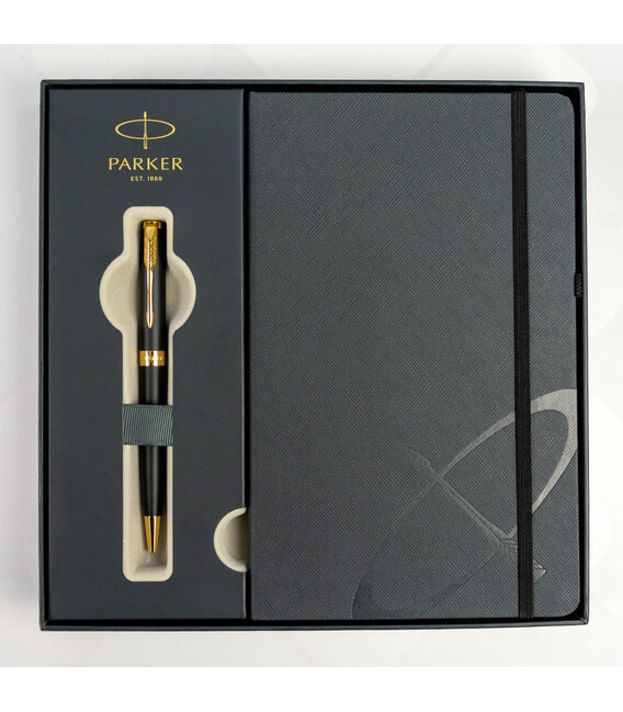 Набор с шариковой ручкой Parker SONNET Matte Black Lacquer GT и блокнотом в подарочной коробке. Шелковисто-матовый черный дизайн подчеркнут высокопробной золотой отделкой. Элегантно выглядит и приятно ощущается в руке увесистый латунный корпус. Фирменный клип в форме стрелы и выгравированное название бренда завершают безупречный стиль ручки. Подарочный набор Sonnet поможет сделать любое событие действительно незабываемым.✔ Шариковая ручка Parker SONNET Matte Black Lacquer GT BP Корпус – латунь с черным матовым покрытием.Глянцевая детализация – позолота 23 К.Поворотный механизм колпачка для активации стрежня.В комплектации шариковый стержень: черные чернила, средняя толщина письма (диаметр шарика=1 мм).Шариковый стержень QuinkFlow гарантирует плавный поток чернил и равномерно насыщенную линию. Ручка пишет мягко, а чернила не размазываются. Запас чернил рассчитан на линию примерно 3,5 км.✔ Блокнот Parker Размеры: 134 х 210 мм.Закрывается на резинку.Переплет: твердый с логотипом Parker.Разметка в линейку без полей.Титульный лист с местом для подписи.Набор в подарочной коробке Parker с золотым тиснением.Размеры коробки: 225 х 225 х 43 мм.