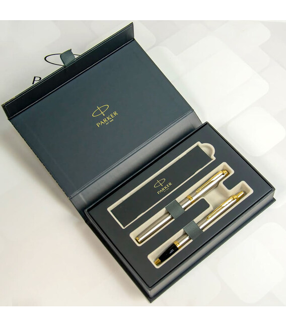 Подарочный набор ручек Parker IM Brushed Metal GT RB+BP DUO24 из роллерной и шариковой ручки из одной коллекции – идеальный выбор для делового человека. Роллерная ручка прекрасно справится с ролью изысканного пишущего инструмента для подписания важных договоров, а шариковая ручка станет более повседневным вариантом.Элегантный дизайн IM Brushed Metal GT с латунным корпусом с красивым лаковым покрытием. Роскошно смотрится глянцевая отделка позолотой. Гравировка с названием бренда Parker на кольце и фирменный зажим-стрела громко заявляют о благородном происхождении инструмента. Нестареющая классика Parker для людей, которые знают себе цену.✔ Роллерная ручка IM Brushed Metal GT:Корпус и съемный колпачок из ювелирной латуни.Прозрачное лаковое покрытие.Детализация позолотой.Черная глянцевая зона захвата из ударопрочного пластика.В комплектации - один роллерный стержень.Длина ручки около 138 мм.Толщина корпуса – 12,6 мм.✔ Шариковая ручка IM Brushed Metal GT:Корпус из латуни с лаковым покрытием.Черная глянцевая зона захвата из ударопрочного пластика.Детализация: позолота.Классический нажимной механизм.В комплектации - один шариковый стержень QuinkFlow.Длина ручки около 136 мм.Набор ручек поставляется в подарочной коробке с гарантией качества.