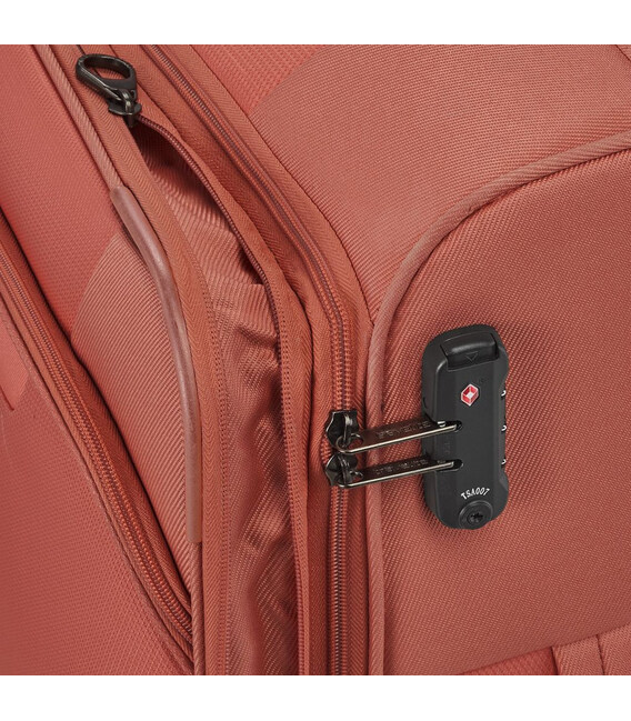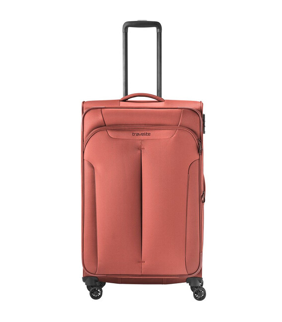 Travelite CROATIA [кораллово-розовый] на 90-96 литров – большой стильный чемодан с возможностью расширения, большим передним карманом и встроенным замком TSA. Размер L и мягкий тип корпуса – лучшее решение для длительных и дальних путешествий, поездок всей семьей, когда нужно взять с собой большое количество вещей.Коллекция Croatia от немецкого бренда Travelite – это линейка текстильных чемоданов в практичном мягком корпусе, который позволяет упаковать еще парочку-вторую вещей, когда твердый багаж уже трещал бы по швам, а в случае с размером L exp. дополнительное место дарит еще и вставка-расширитель на молнии. Внешний карман является еще одним преимуществом мягкого багажа. Он незаменим для размещения вещей первой необходимости: от билетов, документов или салфеток до книги или легкой куртки.Информация о чемодане Travelite CROATIA Coral [080349 88]✔ Водонепроницаемый текстильный корпус: полиэстер 600D.✔ Большой размер (+ расширение на 4 см): высота 77 – ширина 47 – толщина 30-34 см.✔ Масштабируемый объем с 90 до 96 литров.✔ Легкий вес: 3,3 кг.✔ Выносливая багажная молния с двумя бегунками.✔ Встроенный в корпус кодовый замок TSA LOCK®.✔ 4 колеса с двойными роликами – устойчивость и легкое разворачивание чемодана на одном месте.✔ Регулируемая по высоте телескопическая ручка.✔ Верхняя и боковая усиленная ручка для переноски.• Глубокая камера с фиксирующими ремнями.• Внутренне отделение на молнии под крышкой чемодана.• Дополнительные карманы на перегородке для мелкого багажа.• Большой передний карман на молнии.Оригинальные немецкие чемоданы TRAVELITE/Тревелайт - официальная гарантия качества и быстрая доставка от А ttribute.ua.