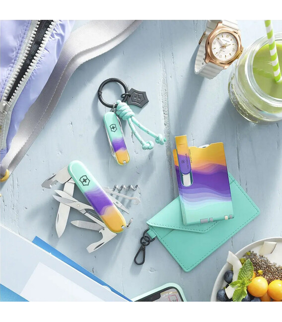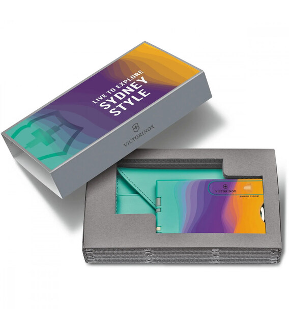 Victorinox SWISS CARD Classic - Sydney Style – швейцарская карта, она же карта-мультитул, на 10 функций из коллекции Live to Explore - «Живи, чтобы исследовать». Элегантно оптимизируйте набор вещей вместе с этой многофункциональной картой и освободите место в сумочке. Swiss Card Classic содержит 10 функций, призванных облегчить жизнь: от ножниц и лезвия до шариковой ручки. А добавьте к этому еще и стильный футляр для банковских карт или визиток, чтобы получить репутацию модницы.Информация о SWISS CARD Classic - Sydney Style [0.7100.E222]✔ Яркая коллекция 2023 года - Live to Explore.✔ Корпус-органайзер в дизайне Sydney Style.✔ 10 функций.✔ В наборе с мятно-зеленым картхолдером-чехлом на карабине.✔ Размер карты (длина х ширина х толщина), мм: 82 х 55 х 4✔ Вес: 26 г✔ Подарочная коробка.1. небольшое лезвие2. ножницы3. пилочка для ногтей4. - плоская отвертка 2,5 мм5. шариковая ручка6. булавка7. зубочистка8. пинцет9. линейка (в дюймах)10. линейка (в см)