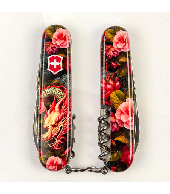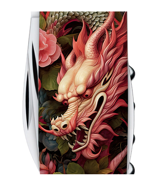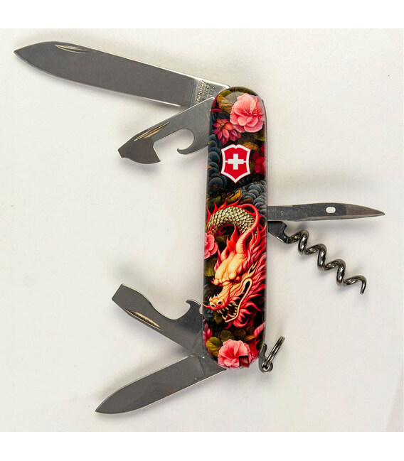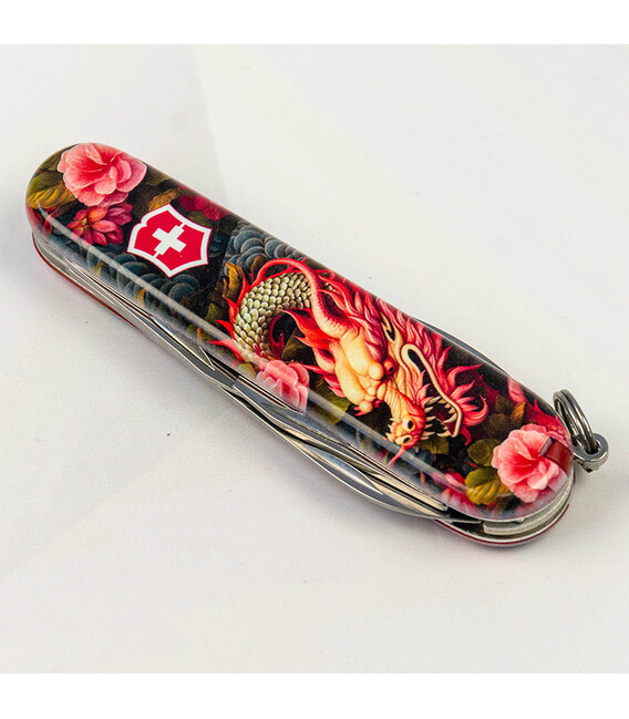 Эксклюзивный швейцарский карманный нож Victorinox SPARTAN 91 мм с захватывающим дизайном накладок. Согласно восточному календарю, хозяином 2024 года будет Зеленый Деревянный Дракон. Дракон символизирует силу, честь, благородство. Искренне верим, что следующий год поможет нам в полной мере продемонстрировать эти свои качества, а складной нож Victorinox с Драконом станет оригинальным напоминанием об этом. Идеальный подарок на Новый год, коллекционерам и родным, знакомым «драконам», а также всем любителям мира фэнтези.SPARTAN – многофункционален (12 функций), чтобы использовать его в быту, на работе и отдыхе; в городе и на природе. И при этом достаточно компактен, чтобы носить его всегда и везде с собой. Каждый из инструментов порадует безупречной работой и долговечностью.Информация о складном ноже Victorinox SPARTAN [1.3603.Z3300p]:✔ Праздничная линейка Spartan Zodiac 2024 с Драконами.✔ Эксклюзивные пластиковые накладки с изображением [Китайский зеленый дракон].✔ Тип нанесения рисунка: полная цифровая полноцветная запечатка накладок.✔ Покрытие глянцевым лаком для защиты и эстетичного вида.✔ Замена пинцета и зубочистки на красные для гармоничного сочетания с дизайном.✔ Количество функций: 12.✔ Средний размер складного ножа: длина 91 мм – ширина 26 мм – толщина 14 мм✔ Вес ножа: 59 г✔ Комплектация: нож Spartan, коробка, гарантия-сертификат.✔ Нож изготовлен в Швейцарии.✔ Victorinox AG гарантирует, что все ножи из первоклассной нержавеющей стали.1. большое гладкое лезвие (длина 6 см)2. лезвие меньшего размера (длина 3,5 см)3-5. открывалка для бутылок с плоской отверткой 6 мм на конце и пазом для изоляции6-7. консервный нож с плоской отверткой 3 мм на конце8. штопор9. шило с функцией кернера или дырокола10. пинцет в передней накладке11. зубочистка в задней накладке12. стальное кольцо