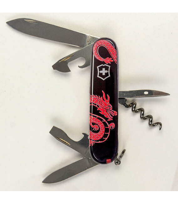 Швейцарский складной нож Victorinox SPARTAN ZODIAC 91мм / 12 функций / черные накладки / штопор / Красный дракон (Швейцария) Гарантия: пожизненная