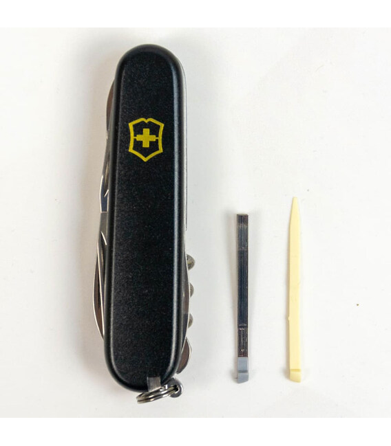 Описание Складной нож Victorinox CLIMBER MAT черный матовый лак с желт.лого 1.3703.3.M0008p
