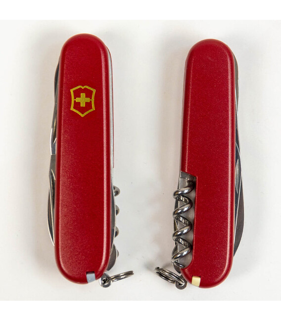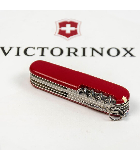 Складной нож Victorinox HUNTSMAN MAT 91мм / 15 функций / красные матовые накладки / штопор / ножницы / пила / крюк / желтый логотип 1.3713.M0008p (Швейцария) Гарантия: пожизненная