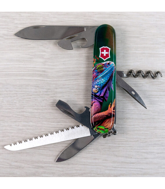 Карманный складной нож среднего размера Victorinox CAMPER ANIMAL 91мм/14 функций/штопор/пила /Хамелеон (Швейцария) Гарантия: пожизненная