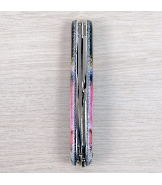 Эксклюзивная модель среднего карманного ножа TINKER ANIMAL с качественной цветной печатью - Обезьяна Мандрил - на обеих накладках, покрытых глянцевым лаком. Специальное предложение Victorinox ANIMAL для украинских поклонников легендарной ножевой продукции Victorinox. Стандартные инструменты ножа TINKER, среди которых крутая крестовая отвертка, пополнились стальной шпилькой. А эстетичные накладки делают нож прекрасным образцом коллекционирования.Информация о складном ноже Victorinox 1.4603.3.F1070pw✔ Спецвыпуск Victorinox ANIMAL (начало выпуска 2024 год, доступен только в Украине).✔ Эксклюзивный дизайн [Обезьяна Мандрил] в комплектации ножа TINKER.✔ Тип нанесения рисунка: полная цифровая полноцветная запечатка на пластиковых накладках.✔ Покрытие накладок глянцевым лаком (GLOSS) для защиты и «блестящего» вида.✔ Печать и покрытием лаком реализовано на высококачественном профессиональном оборудовании в Украине.✔ Замена пинцета и зубочистки на черные для гармоничного сочетания с дизайном.✔ В комплектацию добавлена булавка.✔ Количество функций: 12+1.✔ Замена упаковки на подарочный футляр с прозрачным окошком (внутри – оригинальный сертификат-гарантия).✔ Нож изготовлен в Швейцарии, а Victorinox AG гарантирует, что все ножи из первоклассной нержавеющей стали.1. лезвие длиной 6 см2. лезвие длиной 3,5 см3-5. открывалка для бутылок с плоской отверткой 6 мм на конце и пазом для изоляции6-7. консервный нож с плоской отверткой 3 мм на конце8. крестовая отвертка 1/29. шило с функцией кернера или дырокола10. пинцет в передней накладке11. зубочистка в задней накладке12. стальное кольцо13. стальная булавка (в слоте возле шила)