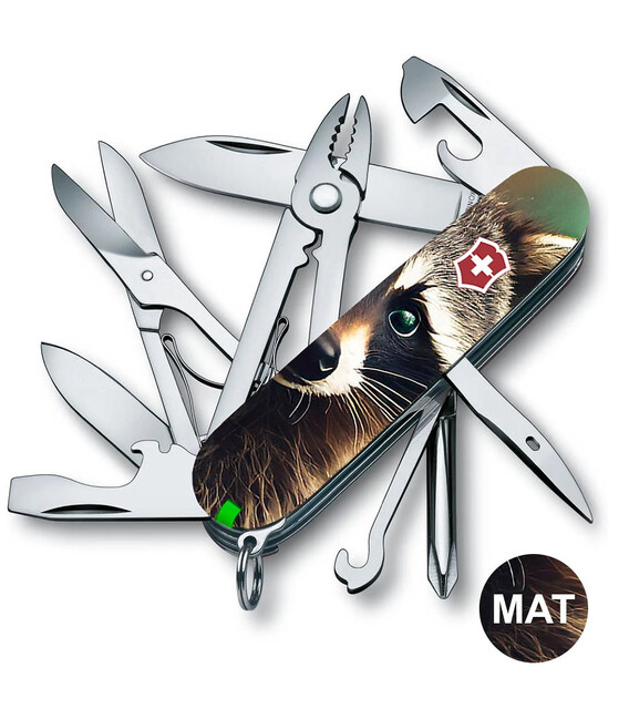 Карманный складной нож среднего размера Victorinox DELUXE TINKER ANIMAL 91мм/18 функций/отвертки/ножницы/плоскогубцы/крюк /Енот (Швейцария) Гарантия: пожизненная