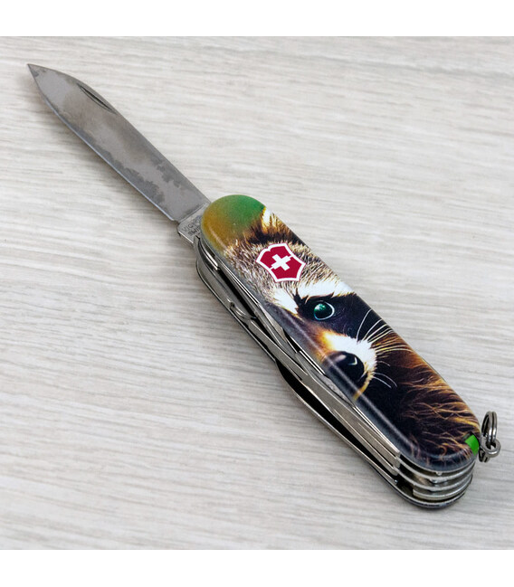 Описание Складной нож Victorinox DELUXE TINKER ANIMAL Енот 1.4723.3.F1120pw