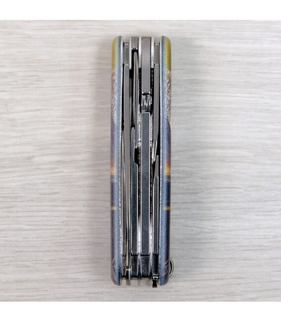Многозадачный карманный нож DELUXE TINKER с милой мордочкой енотика на обеих накладках и покрытием матовым лаком. Специальное предложение для украинских поклонников культовых ножей Victorinox. Инструменты DELUXE TINKER, среди которых большой набор приспособлений для ремонта и починки (отвертки, кусачки, шило), пополнился еще и стальной булавкой.Информация о складном ноже Victorinox 1.4723.3.F1120pw✔ Спецвыпуск Victorinox ANIMAL (доступен только в Украине; начало выпуска 2024 год).✔ Эксклюзивный дизайн [Енот] в комплектации ножа DELUXE TINKER.✔ Тип нанесения рисунка: полная цифровая полноцветная запечатка на пластиковых накладках.✔ Покрытие накладок матовым лаком (MAT) для защиты и эстетичного вида.✔ Печать и покрытием лаком реализовано на высококачественном профессиональном оборудовании в Украине.✔ Замена зубочистки и пинцета на зеленые для гармоничного сочетания с дизайном.✔ В комплектацию добавлена булавка.✔ Количество функций: 17+1.✔ Замена упаковки на подарочный футляр с прозрачным окошком (внутри – оригинальный сертификат-гарантия).✔ Нож изготовлен в Швейцарии и Victorinox AG гарантирует, что все ножи из первоклассной нержавеющей стали.1. лезвие 6 см2. меньшее лезвие 3,5 см3-5. открывалка для бутылок с плоской отверткой 6 мм на конце и пазом для изоляции6-7. консервный нож с плоской отверткой 3 мм на конце8. плоскогубцы, комбинированные с9. – кусачки10. – инструмент для обжима проволоки11. крестовая отвертка 1/212. ножницы с пружинным механизмом13. шило с функцией кернера или дырокола14. пинцет в передней накладке15. зубочистка в задней накладке16. стальное кольцо17. крючок18. стальная булавка (в слоте возле крючка)Коллекция ANIMAL, кроме дизайна накладок, отличается заменой пинцета и зубочистки на цветные для наиболее гармоничного сочетания с рисунком, а также расширением комплектации – нож сразу с булавкой. Изменения коснулись и упаковки – ножи ANIMAL помещены в коробку Victorinox с демонстрационной вставкой для эффектной презентации. А эстетичные накладки делают нож прекрасным образцом коллекционирования.