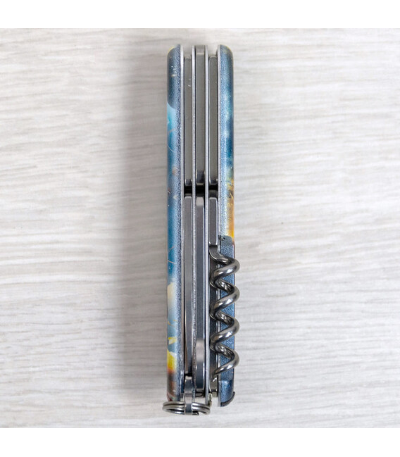 Эксклюзивный карманный нож CLIMBER UKRAINE [Сокол-защитник] с качественной цветной печатью на обеих накладках, покрытых глянцевым лаком. Профессиональное выполнение дизайна с украинскими смыслами. Специальное эстетичное предложение для украинских поклонников и коллекционеров бренда Victorinox.Помимо стандартных для серии инструментов, среди которых ножницы и многоцелевой крючок, этот эксклюзивный Climber получил дополнительно в комплектацию еще и булавку. Идеальный многофункциональный нож, который пригодится в туристическом походе, командировке, каждый день в вашей сумке, рюкзаке, кармане. Удачный для средних складных ножей инструментарий с удобным трехрядным размещением инструментов. Практичный и знаковый подарок в красивой упаковке с прозрачным окошком, что позволяет видеть дизайн сразу и подчеркивает эксклюзивность подарка.Складной нож Victorinox 1.3703.3.T3210pw✔ Спецвыпуск VICTORINOX UKRAINE (начало выпуска 2024 год, доступен только в Украине).✔ Эксклюзивный дизайн [Сокол-защитник] в комплектации ножа CLIMBER.✔ Тип нанесения рисунка: полная цифровая полноцветная запечатка на оригинальных пластиковых накладках.✔ Накладки покрыты глянцевым лаком (GLOSS) для защиты печати и блестящего внешнего вида.✔ Печать и покрытие лаком на высококачественном профессиональном оборудовании в Украине.✔ Замена пинцета на красный, а зубочистки на черную для гармоничного сочетания с дизайном.✔ В комплектацию добавлена булавка.✔ Количество функций: 14+1.✔ Средний размер складного ножа: длина 91 мм – ширина 26 мм – толщина 18 мм✔ Презентабельная подарочная коробка Victorinox с прозрачным окошком (внутри – оригинальный сертификат-гарантия).✔ Нож изготовлен в Швейцарии.✔ Victorinox AG гарантирует, что все ножи из первоклассной нержавеющей стали.1. лезвие длиной 6 см2. лезвие длиной 3,5 см3-5. открывалка для бутылок с плоской отверткой 6 мм на конце и пазом для изоляции6-7. консервный нож с плоской отверткой 3 мм на конце8. ножницы с пружинным механизмом9. крючок10. шило с функцией кернера или дырокола11. пинцет в передней накладке12. зубочистка в задней накладке13. штопор14. стальное кольцо15. булавка (в слоте возле штопора)
