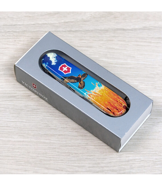 Эксклюзивный карманный нож CLIMBER UKRAINE [Свободный Сокол] с качественной цветной печатью на обеих накладках, покрытых глянцевым лаком. Профессиональное выполнение дизайна с украинскими смыслами. Специальное эстетичное предложение для украинских поклонников и коллекционеров бренда Victorinox.Помимо стандартных для серии инструментов, среди которых ножницы и многоцелевой крючок, этот эксклюзивный Climber получил дополнительно в комплектацию еще и булавку. Идеальный многофункциональный нож, который пригодится в туристическом походе, командировке, каждый день в вашей сумке, рюкзаке, кармане. Удачный для средних складных ножей инструментарий с удобным трехрядным размещением инструментов. Практичный и знаковый подарок в красивой упаковке с прозрачным окошком, что позволяет видеть дизайн сразу и подчеркивает эксклюзивность подарка.Складной нож Victorinox 1.3703.7.T3230pw✔ Спецвыпуск VICTORINOX UKRAINE (начало выпуска 2024 год, доступен только в Украине).✔ Эксклюзивный дизайн [Свободный Сокол] в комплектации ножа CLIMBER.✔ Тип нанесения рисунка: полная цифровая полноцветная запечатка на оригинальных пластиковых накладках.✔ Накладки покрыты глянцевым лаком (GLOSS) для защиты печати и блестящего внешнего вида.✔ Печать и покрытие лаком на высококачественном профессиональном оборудовании в Украине.✔ Замена пинцета и зубочистки на красные для гармоничного сочетания с дизайном.✔ В комплектацию добавлена булавка.✔ Количество функций: 14+1.✔ Средний размер складного ножа: длина 91 мм – ширина 26 мм – толщина 18 мм✔ Презентабельная подарочная коробка Victorinox с прозрачным окошком (внутри – оригинальный сертификат-гарантия).✔ Нож изготовлен в Швейцарии.✔ Victorinox AG гарантирует, что все ножи из первоклассной нержавеющей стали.1. лезвие длиной 6 см2. лезвие длиной 3,5 см3-5. открывалка для бутылок с плоской отверткой 6 мм на конце и пазом для изоляции6-7. консервный нож с плоской отверткой 3 мм на конце8. ножницы с пружинным механизмом9. крючок10. шило с функцией кернера или дырокола11. пинцет в передней накладке12. зубочистка в задней накладке13. штопор14. стальное кольцо15. булавка (в слоте возле штопора)