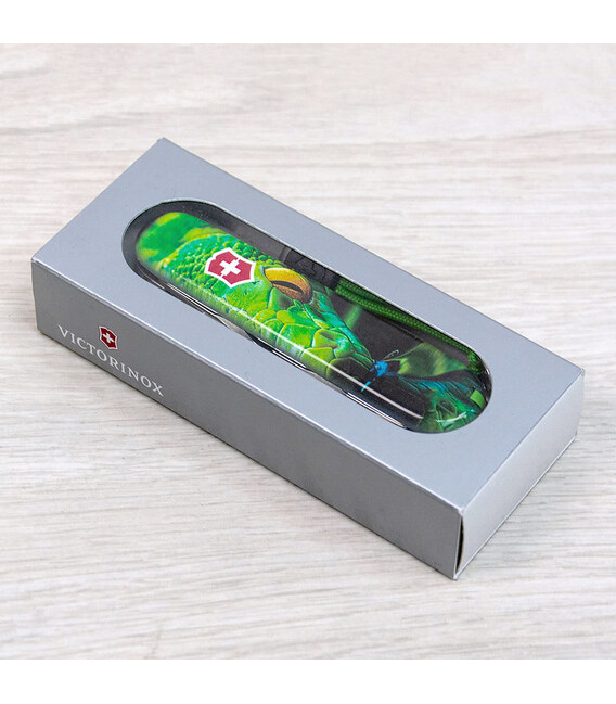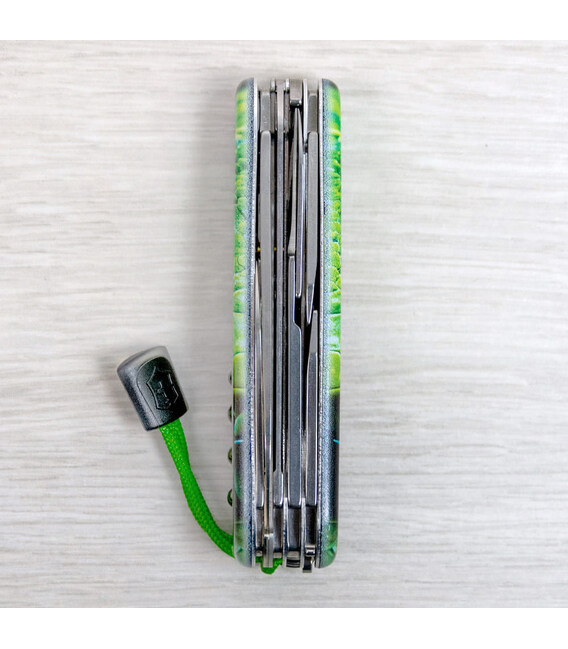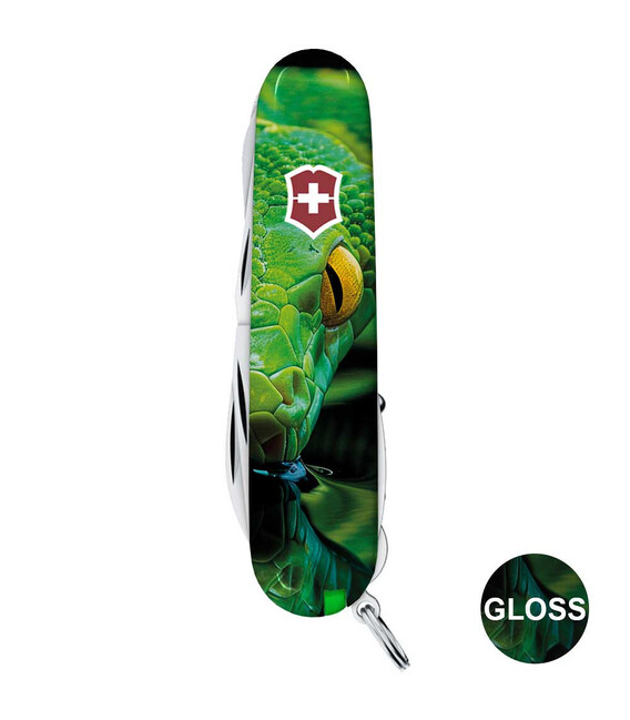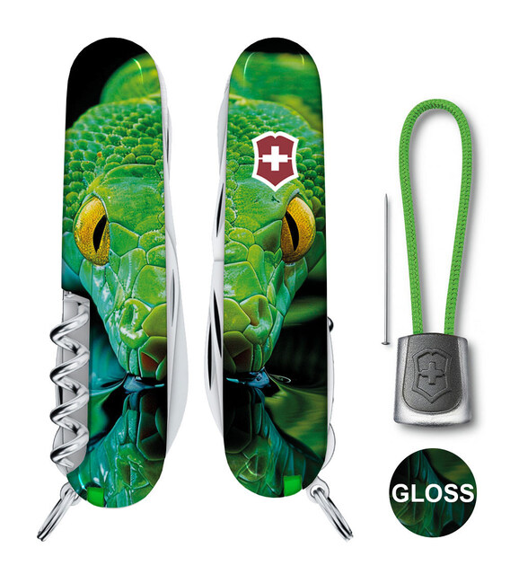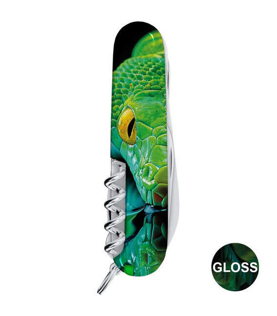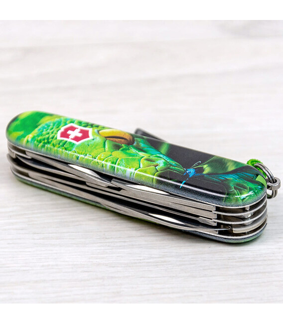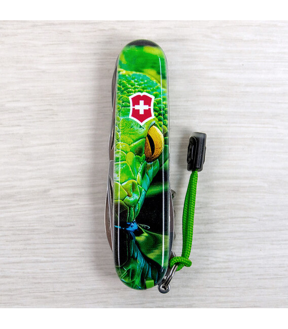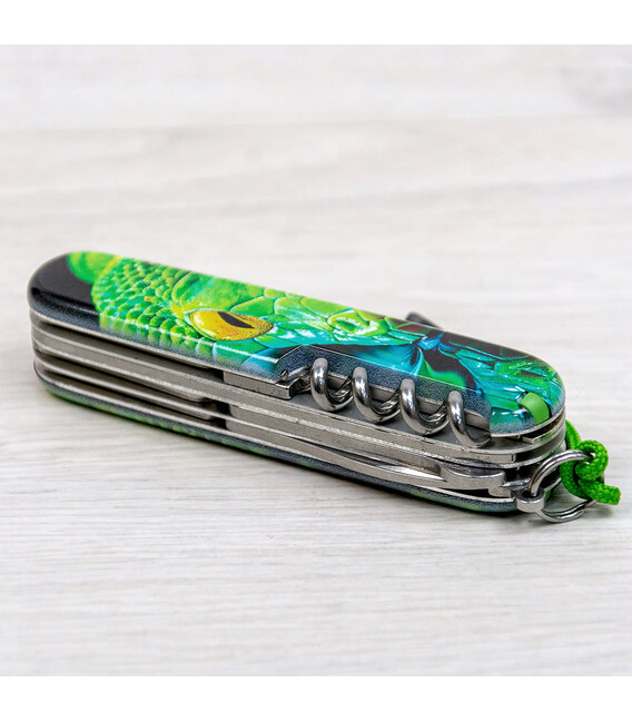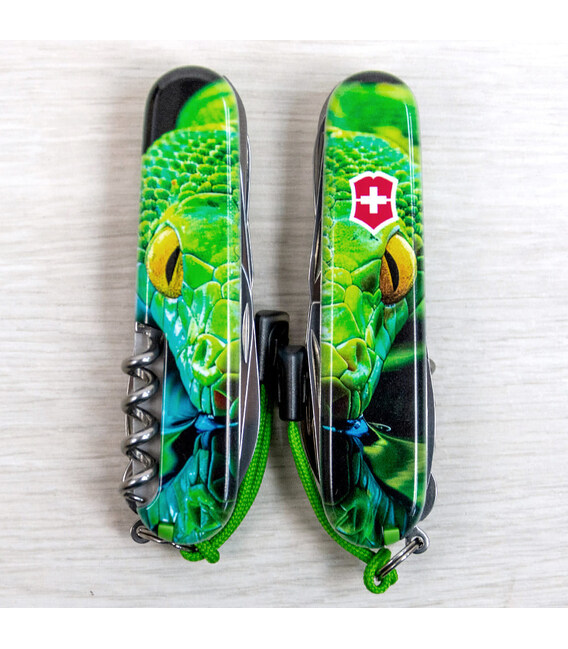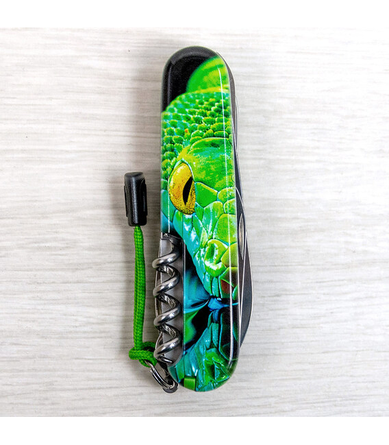 Описание Складной нож Victorinox HUNTSMAN ZODIAC Зелёная деревянная змея 1.3713.3.Z4310pk