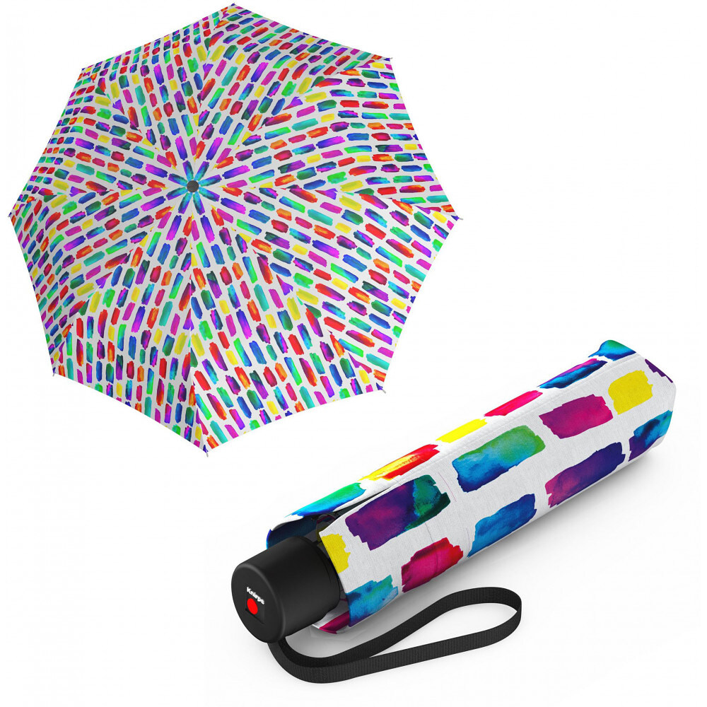 Knirps A.050 Medium Manual (Create Crystal) - механический складной зонт с куполом 98 см на 8 спицах. Компактная модель с вместительным куполом, которую всегда удобно захватить с собой.Серия A.050 представлена качественными механическими моделями по привлекательной цене. Карманный зонт с ручным механизмом открывания и приятно большим куполом, под которым могут разместиться даже два человека. Благодаря 3-секционному стальному штоку эта модель складывается до удобных 24 см и поэтому легко помещается в сумке или рюкзаке. Зонт изготовлен в известном качестве Knirps и был протестирован в аэродинамической трубе при скорости ветра до 80 км/ч. Каркас выдержан в современном черном цвете, а купол доступен в разных цветах.Технические параметры зонта Knirps 957051 8543✔️ Механизм: ручной (открывается и складывается при помощи слайдера).✔️ Купол изготовлен из полиэстера.✔️ Дизайн купола: Create Crystal (белый с разноцветным акварельным принтом).✔️ Спицы из алюминия и стеклопластика.✔️ Черный шток в три сложения изготовлен из алюминия и стали.✔️ Удобная пластиковая ручка с ремешком-петлей.✔️ 8 спиц.✔️ Ветроустойчивость до 80 км/ч, протестированная в аэродинамической трубе.✔️ Диаметр открытого купола: 98 см.✔️ Длина сложенного зонта: 24 см.✔️ Вес зонта: 290 г.✔️ В комплекте с защитным чехлом. Оригинальный немецкий зонт Knirps с расширенной 5-летней гарантией качества от производителя.Высококлассная брендовая продукция от известных мировых производителей на chemodanoff.com.ua.