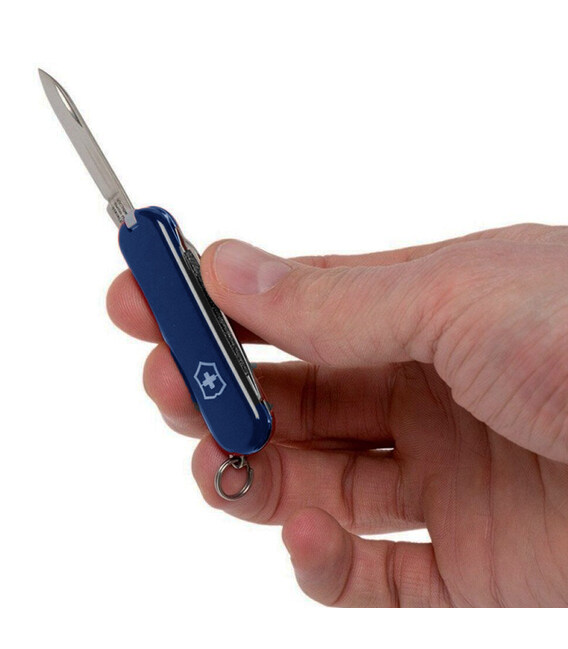 Victorinox ESCORT (синий) – маленький швейцарский нож-брелок 58 мм на 6 функций. Карманный нож Escort — это ключ к тому, чтобы подготовиться ко всем вашим повседневным приключениям, поэтому он всегда на вашей связке ключей. Базовый набор приспособлений для мужчин и женщин. Все инструменты гарантируют безупречную, долговечную работу. Легендарное качество стали Victorinox и профессиональная технология обработки сделают этот нож вечным помощником на каждый день.Информация о ноже Victorinox ESCORT [0.6123.2]✔ Изготовлен из высококлассной нержавеющей стали.✔ Синие накладки-рукоять из ударопрочного пластика с логотипом бренда.✔ 6 функций.✔ Легкий вес: 17 г✔ Коллекция маленьких складных ножей Victorinox (длина х ширина х толщина), мм: 58 х 18 х 8✔ Сделано в Швейцарии.1. маленькое стальное лезвие2. пилочка для ногтей3. – плоская отвертка 2,5 мм4. пинцет в передней накладке5. зубочистка в задней накладке6. кольцо для крепления
