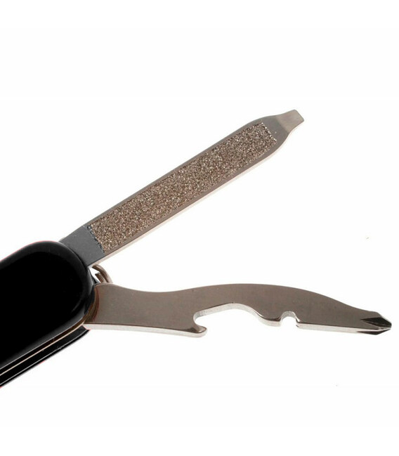 Victorinox RAMBLER (черный) – маленький швейцарский нож-брелок 58 мм на 10 функций. Многозадачный карманный нож с ножницами и отверткой Phillips, который понравится как взрослым, так и детям. Привести в порядок ваш маникюр, заточить карандаш или произвести небольшой ремонт, с такой работящей крохой вам все по плечу. Все инструменты гарантируют безупречную, долговечную работу. Легендарное качество стали Victorinox и профессиональная технология обработки сделают этот нож вечным помощником на каждый день.Информация о ноже Victorinox RAMBLER [0.6363.3]✔ Изготовлен из высококлассной нержавеющей стали.✔ Черные накладки-рукоять из ударопрочного пластика с логотипом бренда.✔ 10 функций.✔ Легкий вес: 30 г✔ Коллекция маленьких складных ножей Victorinox (длина х ширина х толщина), мм: 58 х 20 х 10✔ В наборе с маленьким черным чехлом из кожзама.✔ Сделано в Швейцарии.1. маленькое стальное лезвие2. ножницы с пружинным механизмом3. открывалка4. - крестовая отвертка 0/1, магнитная5. - паз для зачистки проводов6. пилочка для ногтей7. - плоская отвертка 2,5 мм8. пинцет в передней накладке9. зубочистка в задней накладке10. кольцо для крепления VICTORINOX – стабильно высокое качество ножевой продукции с 1884 года.Подлинная продукция, профессиональный гарантийный сервис и быстрая доставка.
