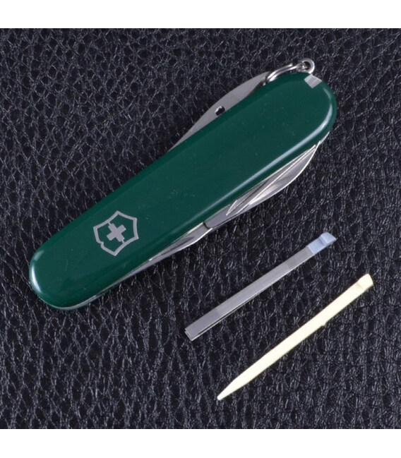 Victorinox CAMPER (зеленый) – швейцарский карманный нож 91 мм на 13 функций. Camper - незаменимый инструмент для распилки дерева или обрезки тентовых канатов в походах. Наряду с палаткой, спальным мешком и переносной походной печью, этот нож займет почетное место в экипировке всех, кто любит проводить время на свежем воздухе. Все инструменты гарантируют безупречную, долговечную работу, не люфлят. Тип ножевого замка Slip-joint - это проверенная временем конструкция, которая фиксирует лезвие в положении к рукояти и надежно защищает от запрокидывания во время работы.Информация о ноже Victorinox CAMPER [1.3613.4]✔ Нож швейцарского производства из первоклассной нержавеющей стали.✔ Зеленые накладки-рукоять из ударопрочного пластика с логотипом бренда.✔ 13 функций.✔ Средний размера ножа Victorinox (длина х ширина х толщина), мм: 91 х 26 х 18✔ На нож распространяется пожизненная гарантия качества.✔ Картонная коробочка с оригинальным сертификатом.✔ Сделано в Швейцарии.1. большое стальное лезвие2 лезвие меньшего размера3. пила по дереву4. открывалка для бутылок5. – плоская отвертка 6 мм6. – паз для устранения изоляции7. открывалка для консервных банок8. – плоская отвертка 3 мм9. штопор10. шило (дырокол)11. пинцет в передней накладке12. зубочистка в задней накладке13. стальное кольцо для крепления Все ножи Victorinox 91 мм с пластиковыми накладками имеют специальное отверстие под булавку в накладке возле штопоре (в комплектацию к данной модели булавка не входит и продается отдельно).