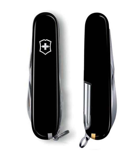 Victorinox HIKER (черный) – швейцарский нож 91 мм на 13 функций из коллекции средних складных ножей Victorinox. Модель Hiker порадует наличием добротной отвертки Phillips вместо штопора и очень острой пилы. Если вам нужен многофункциональный полевой нож, тогда поиски увенчались успехом. Все инструменты гарантируют безупречную, долговечную работу, не люфлят. Тип ножевого замка Slip-joint - это проверенная временем конструкция, которая фиксирует лезвие в положении к рукояти и надежно защищает от запрокидывания во время работы.Информация о складном ноже Victorinox HIKER [1.4613.3]✔ Нож швейцарского производства из первоклассной нержавеющей стали.✔ Черные накладки-рукоять из ударопрочного пластика с логотипом бренда.✔ 13 функций.✔ Средний размера ножа Victorinox (длина х ширина х толщина), мм: 91 х 26 х 16✔ На нож распространяется пожизненная гарантия качества.✔ Картонная коробочка с оригинальным сертификатом.✔ Сделано в Швейцарии.1. большое стальное лезвие2 лезвие меньшего размера3. пила по дереву4. крестообразная отвертка 1/25. открывалка для бутылок6. – плоская отвертка 6 мм7. – паз для устранения изоляции8. открывалка для консервных банок9. – плоская отвертка 3 мм10. шило (дырокол)11. пинцет в передней накладке12. зубочистка в задней накладке13. стальное кольцо для крепления Все ножи Victorinox 91 мм с пластиковыми накладками имеют специальное отверстие под булавку в накладке возле штопоре (в комплектацию к данной модели булавка не входит и продается отдельно).