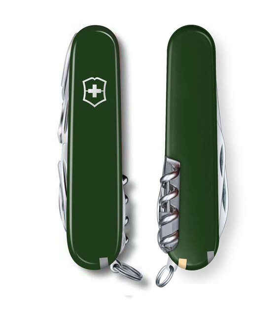 Victorinox SWISS CHAMP (зеленый) – швейцарский многозадачный нож 91 мм на 33 функции. Представляет коллекцию средних складных ножей Victorinox и является рекордсменом по количеству инструментов. Это технически и эстетически совершенный карманный нож с множеством функций и безграничными возможностями. Все инструменты гарантируют безупречную, долговечную работу, не люфлят. Ножевой замок Slip-joint - это проверенная временем конструкция, которая фиксирует лезвие в положении к рукояти и надежно защищает от запрокидывания во время работы.Информация о складном ноже Victorinox SWISS CHAMP [1.6795.4]✔ Изготовлен из высококлассной нержавеющей стали.✔ Зеленые накладки-рукоять из ударопрочного пластика с логотипом бренда.✔ 33 функции.✔ Комфортный вес: 185 г✔ Средний размера ножа Victorinox (длина х ширина х толщина), мм: 91 х 26 х 33✔ На нож распространяется пожизненная гарантия качества.✔ Картонная коробочка с оригинальным сертификатом.✔ Сделано в Швейцарии.1. большое стальное лезвие2 лезвие меньшего размера3. штопор4-5. консервный нож + плоская отвертка 3 мм6-8. открывалка для бутылок + плоская отвертка 6 мм + инструмент для зачистки проводов9. шило-дырокол10. крестовая отвертка 1/211. ножницы12. многофункциональный крюк13. пила по дереву14-17. рыбочистка с инструментом для извлечения рыболовных снастей + линейка (в см) + линейка (в дюймах)18-21. пила по металлу + напильник + пилочка для ногтей + очиститель для ногтей22. плоская отвертка 2,5 мм23. долото 4 мм24-26. плоскогубцы + кусачки + инструмент для обжима проволоки27. шариковая ручка28. увеличительное стекло29. мини отвертка (фиксируется в штопоре)30. пинцет в передней накладке31. зубочистка в задней накладке32. стальная булавка33. кольцо для крепления