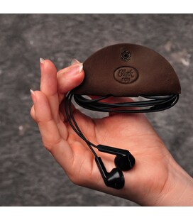 Кожаный холдер для наушников и проводов темно-коричневый