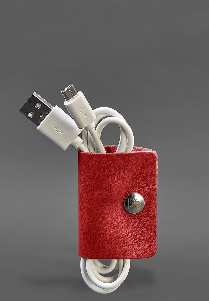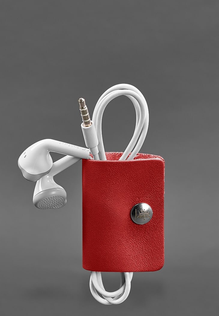 Кожаный холдер для наушников и проводов 2.0 Красный