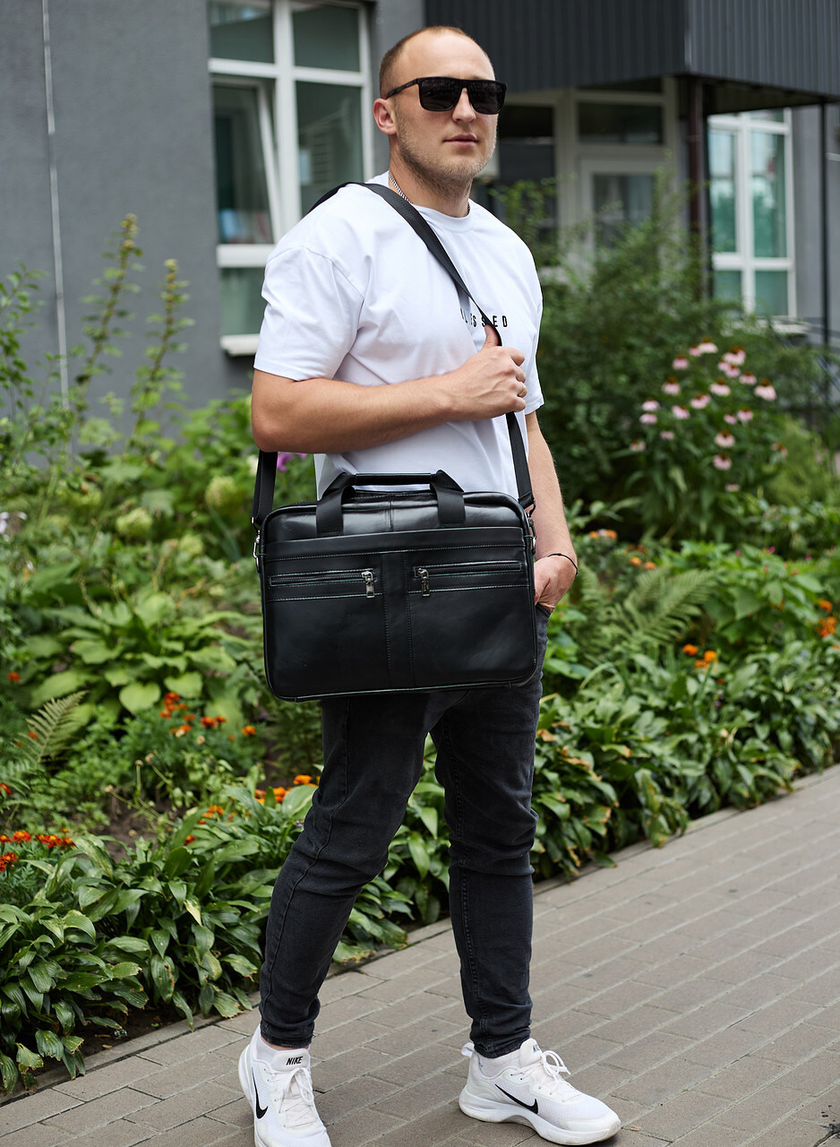 Практический мужской кожаный портфель идеально подходит как для работы в офисе, так и для повседневного использования.