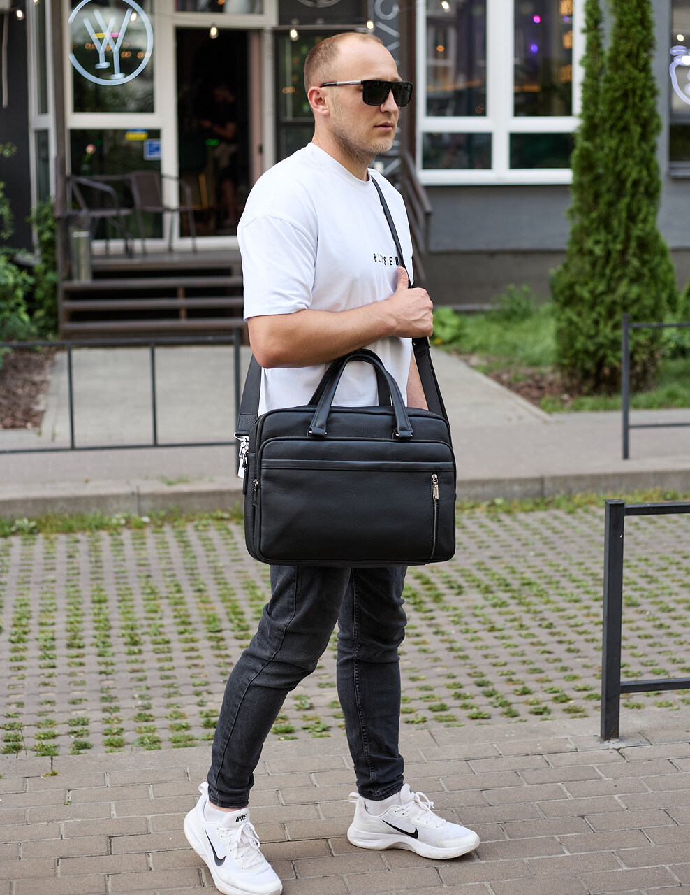 Мужской портфель для ноутбука и документов сочетает деловой стиль и практичность для повседневного использования, выполнен из натуральной кожи.