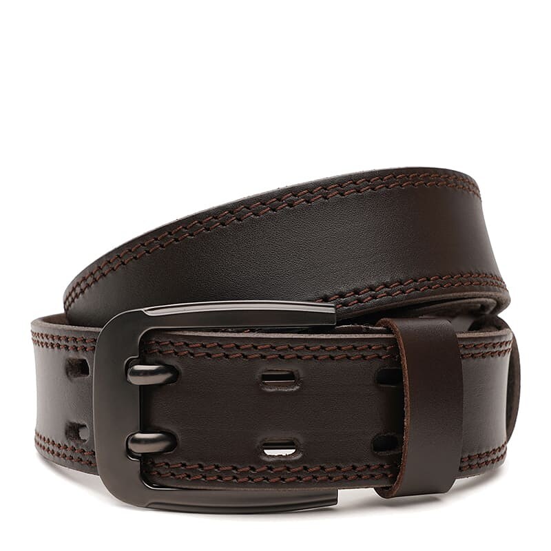 Мужской кожаный ремень. Качественные материалы, стильная пряжка и аккуратный внешний вид. Ремень выполнен из натуральной украинской кожи и металлической фурнитуры. Лицевая сторона ремня защищена от влаги, жира и агрессивных сред. Уход – минимальный (сухая чистка). При необходимости, ремень можно укоротить самостоятельно до нужной вам длины.