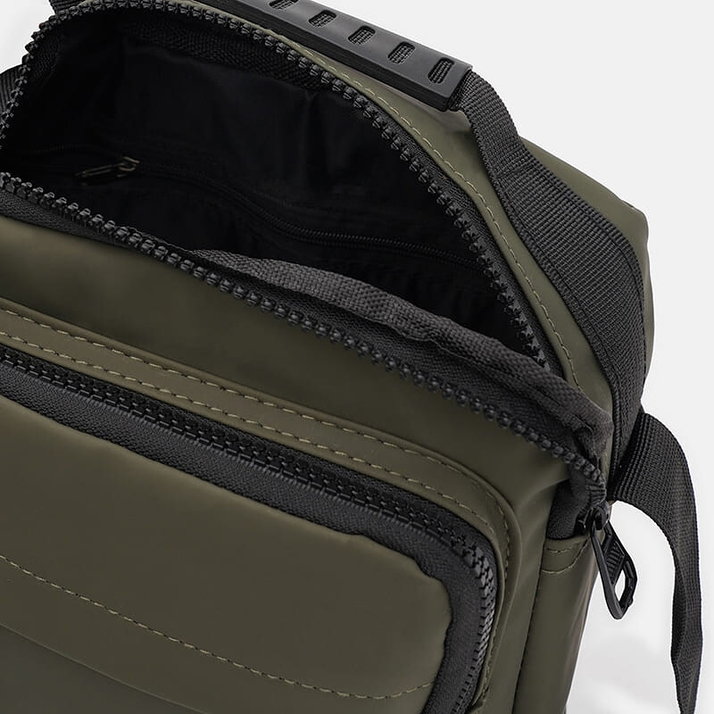 Мужская сумка выполнена из прочного текстиля. Имеет 1 основное отделение на молнии. Внутри сумки имеется 1 карман на молнии. С лицевой стороны-2 кармана на молнии, с тыльной-1 карман на молнии. Подкладка текстиль. Несъемный текстильный ремень регулируется по длине.