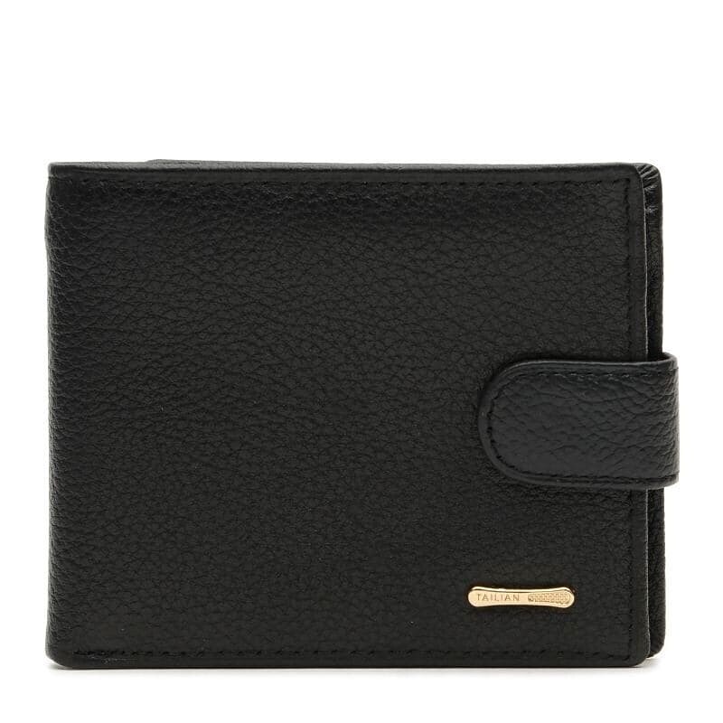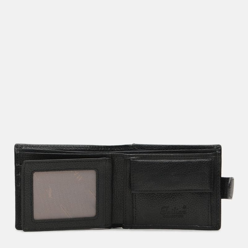 Практичная модель кошелька из натуральной кожи. Функционал: 3 отделения для купюр (одно из которых на молнии), карман на кнопке для монет, 3 слота для карт, прозрачный карман для фото или прав и 2 потайных кармана. Портмоне надежно закрывается на кнопку.